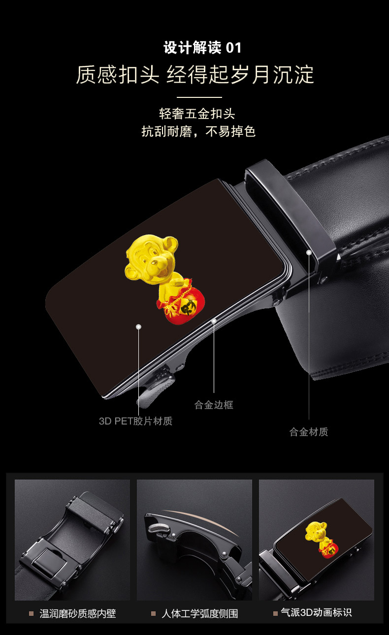 • 光柵材質男士自動扣生肖腰帶